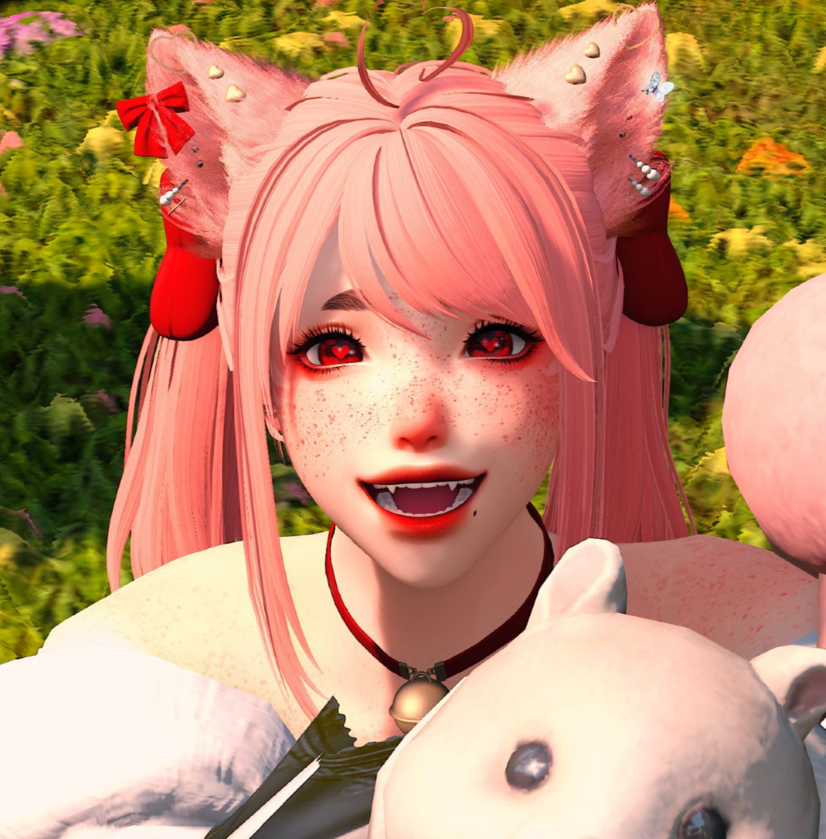 | AGE 27 y/o HEIGHT 4'10" (147.32 cm) WEIGHT 204 lbs(92 kg) ALIGN True Neutral | RACE keeper miqo'te PRONOUNS any/all S/O pan CLASS PUG |