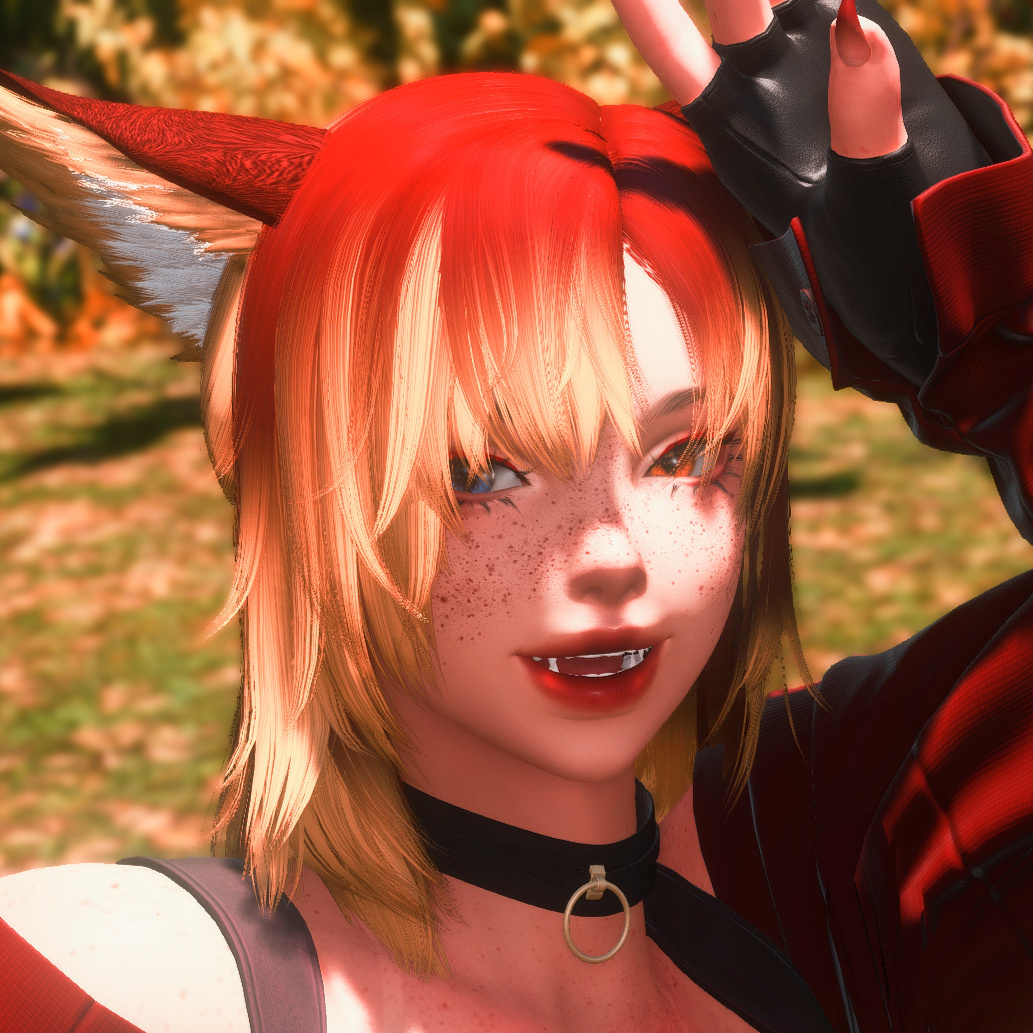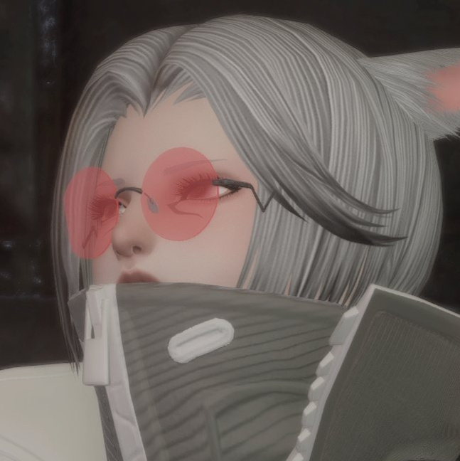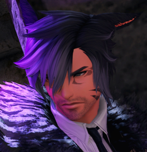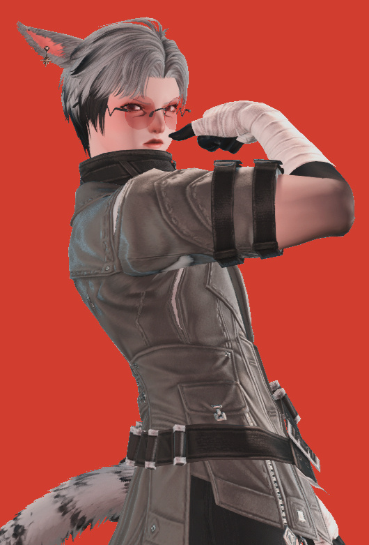 | AGE 24 y/o HEIGHT 5'8" (175 cm) WEIGHT 128 lbs(58 kg) ALIGN Chaotic Neutral | RACE keeper miqo'te PRONOUNS they/he S/O pan/aceflux CLASS MCH/GNB |